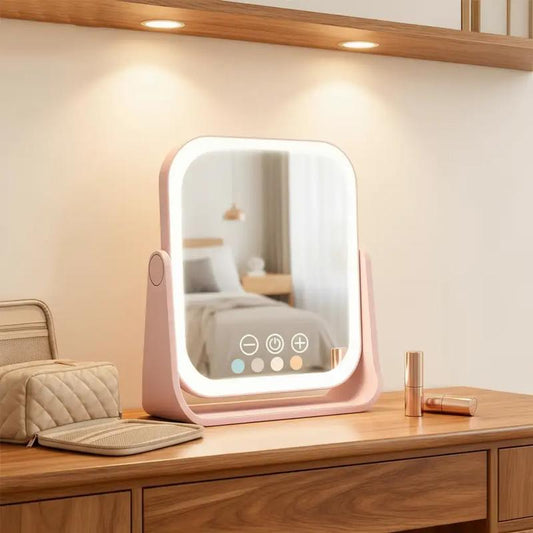 Rechargeable LED Travel Makeup Mirror, Touch Control 3 Color Adjustment, Portable High Definition, 360° Rotatable, Suitable for Dorms, Office, Journeys